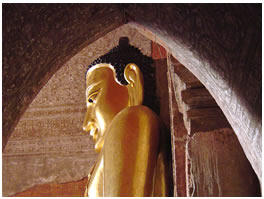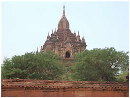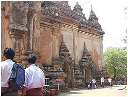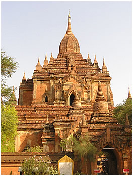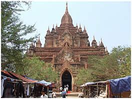 ティーローミィンローはニャウンウーの町からオールドバガンへ向かう途中に建てられています。 バガンの中でも大きなパヤーで、1218年にナダウンミャ(Nantaungmya)王が王位継承に選ばれたことを記念して建てられました。高さは約47mあります。 外壁の痛みが激しく、またそれが古さを感じられていいのかもしれません。内部の天井にはフレスコ画も描かれています。 また、このパヤーはミャンマーで、「バガンスタイル」としてのお寺としても知られています。