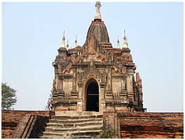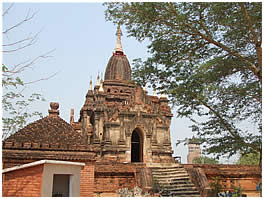 イザゴーナ寺院は、ミンナントゥ村の近くにある寺院です。地球の歩き方などでは紹介されていない寺院です。内部の壁画が見事な寺院です。 また、イザゴーナ寺院は登れることができるパゴダです。ここからの眺めもいいものです。ここからバガンビュータワーも見ることができます。