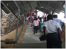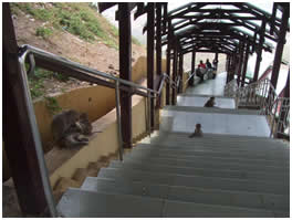 ポッパ山(Mt.Popa)はミャンマーバガンから南東に50kmの場所にあります。バガンの村から車で約1~1時間半の距離です。麓に着いたら、山頂までは徒歩になります。徒歩で約30分ほどです。かなり急勾配な階段です。