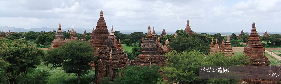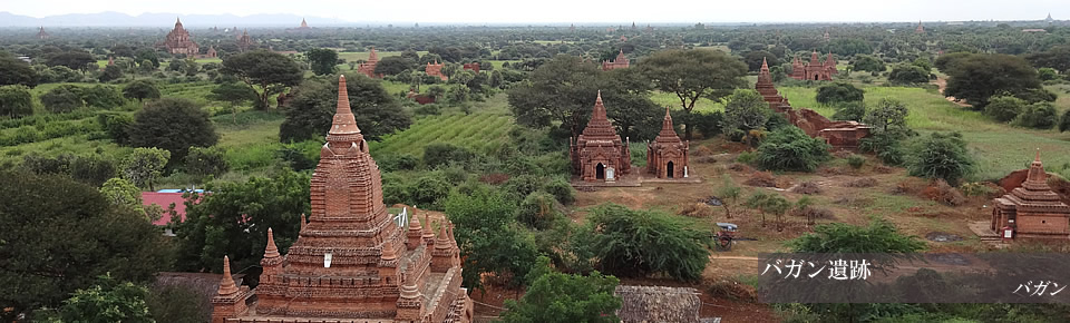 バガンはミャンマーのほぼ中央に位置します。バガンの見所は、なんといっても広大な草原の中に、大小約3,000を超えるパゴダ(寺院)があるというところです。 ヤンゴンのシュエダゴンのような煌びやかさはないものの、古代遺跡を思わせるこの空間は圧巻です。