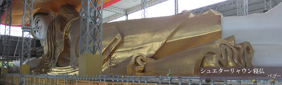 見所は、なんといっても「シュエモード・パヤー」でしょう。ここのパゴダは、1200年以上の歴史があるそうです。 また、バゴーは「ビルマの竪琴」の背景となった巨大な寝釈迦「シュエターリャウン寝仏」があります。