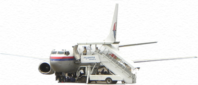 ミャンマーの第一印象→すごい滑走路!周りは木々が多い茂り、ジャングルともいえる中にぽつんと管制塔が一つ。その中にお世辞にも綺麗とは言えな滑走路がありました。閑散としている。空港ロビー、何処かの倉庫のような吹き抜け。つるされた電灯は今にも消えんばかり。