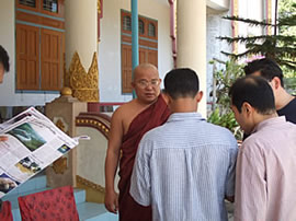 ミャンマーの人々はブラックコーヒーなどは好まず、紅茶にたっぷりの砂糖とミルクが入っているこのお茶を好んで飲むらしい。 緑茶と言わないと、大概この甘いお茶が出てくる。 この、お茶文化にも驚かされた。 本日の昼食は、お寺にてお世話になりました。