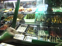 唐辛子の醤油着けの様な、緑の実には気をつけましょう・・・激辛です。 バカンは観光地なだけあって、道沿いには中華にインド料理など、小綺麗な観光客用のお店から、地元の若者が集まってTVを見ながらお茶や食事をしてる、ほんまに安そうなお店までいっぱい有りました。
