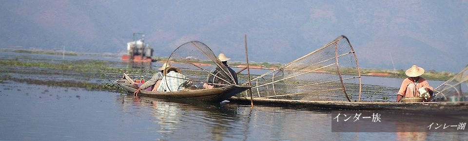 ミャンマーの主な観光の名所の1つとして、このインレー湖があります。海抜1300mのシャン高原に位置し、長さ22km、直径10kmある湖には、およそ15万の人々が暮らします。水深は浅いためここでは水上に家を建てて暮らすインダー族の暮らしに触れることができます。