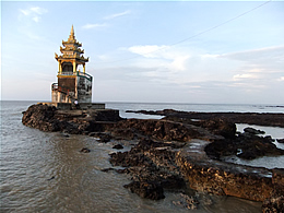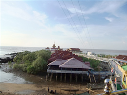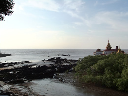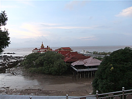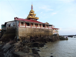 ミャンマー南部のモン州にある、タンビュッザヤから車で約45分、モーラミャインからだと約1時間半のところにあります。海に突き出た寺院としてミャンマー全土でも有名なパヤーです。 2200年前にスリランカから11本の仏陀の聖髪と4体の仏像がミャンマーに流れ着いたそうです。そのうちの一体がこのチャイカミーに安置されているそうです。