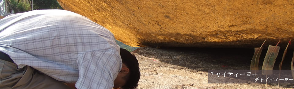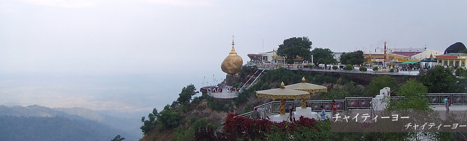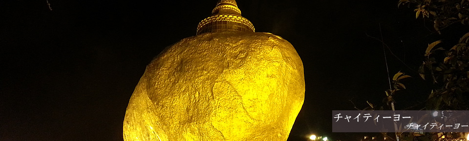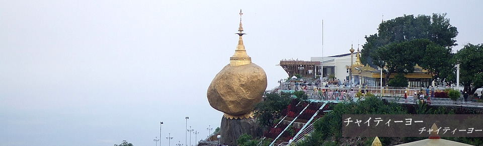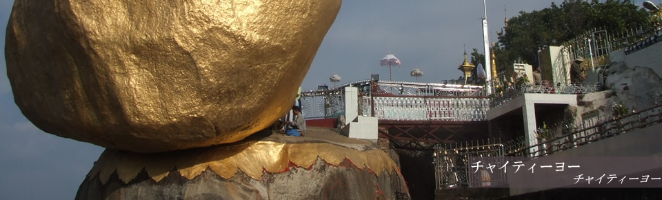 ヤンゴンから北東の方角にあるチャイティーヨーの山。ヤンゴンから180km離れた「チャイトー」という町の山の山頂にチャイティーヨー(ゴールデンロック)はあります。 ヤンゴンからは、バスで約6時間ほどで麓の町、「キンプン」につきます。 チャーター車で約4時間半~5時間。