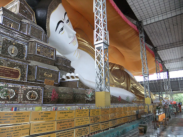 | 1日目 | バゴー日帰り観光 | ホテルにて朝食後、ヤンゴンから北東約80キロのところにある『バゴー』を訪れます。バゴーは、6世紀にモン族の王により建国されたと言われています。 バゴーの主な見所として、シュエターリャウン寝仏はバゴーで最も有名です。全長は55mあり、映画「ビルマの竪琴」の背景となりました。他の見所として、シュエモードパヤーがあります。こちらは、ヤンゴンにあるシュエダゴンパゴダよりも高く114mもあります。 夕刻時にはライトアップされ、煌びやかに輝く黄金のミャンマー最大級の仏塔、シュエダゴンパゴダへご参拝など。 ★バゴーエリアガイドはこちらから★ ★ヤンゴンエリアガイドはこちらから★ |