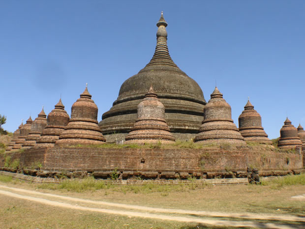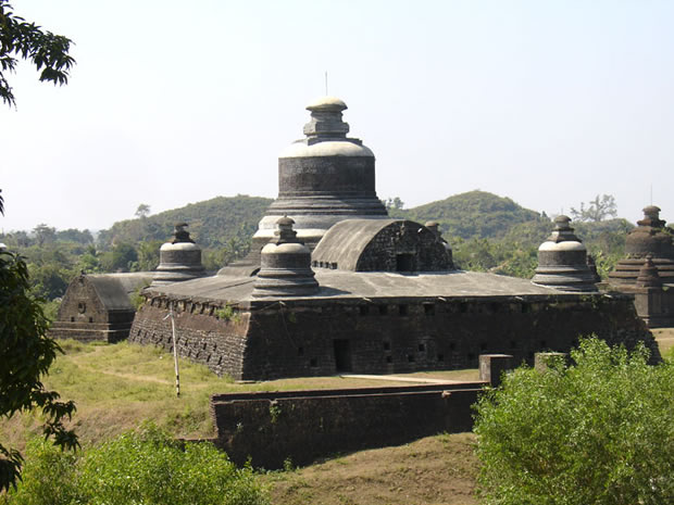 | 2日目 | ミャウー | 終日、ミャウウー遺跡観光となります。 ミャンマーでは遺跡というとバガンが有名ですが、近年ミャウウーの人気も上がってきています。ミャウウーの遺跡は黒ずんでいるのが特徴です。 また、考古学的にはまだ歴史が浅く人の手もあまり入っていません。遺跡らしい遺跡と呼べるでしょう。ミャウーの町全体は、古い城壁で囲まれており、またその中に大小さまざまな遺跡群があります。 ★ミャウーエリアガイドはこちらから★ |